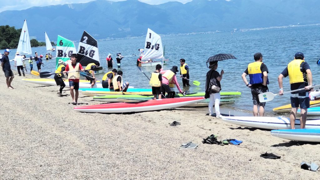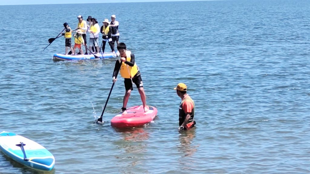 サップ・メガサップ、カヌー、ヨット、OPヨット、ウィンドサーフィン 指導者が丁寧に漕ぎ方などを教えてくれ、皆さん楽しそうに体験されていました。