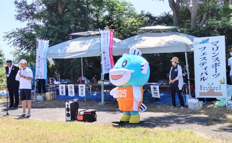 マリンスポーツを親子で楽しめる企画で、小津の子どもたちも毎年楽しみにしてくれています。 今年はスポレクのマスコットのキャッフィーも開会式に来てくれていました。
