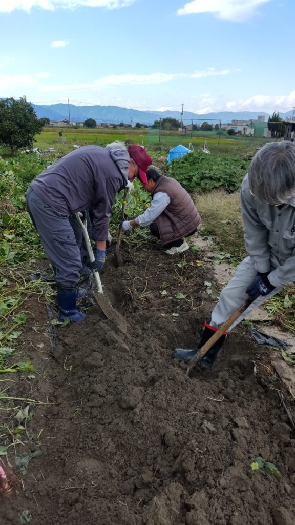 今日は昼から、小津農園で芋掘りをしました。
