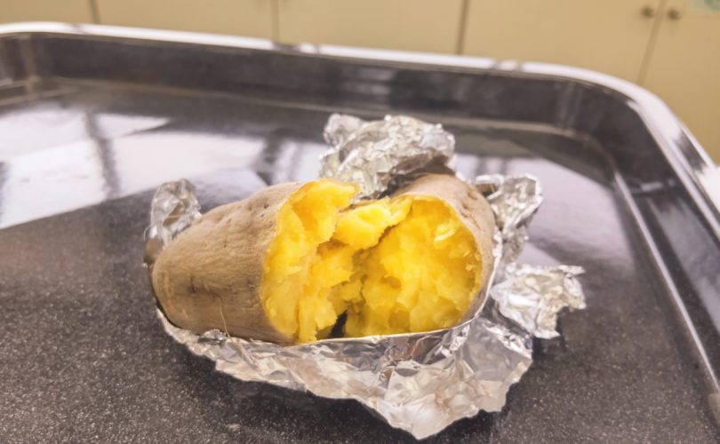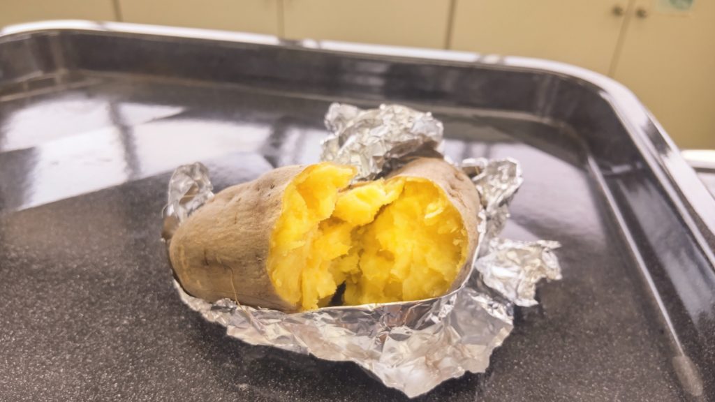 大きなおいもは食べやすい大きさにカットして、アルミホイルに包んでオーブンで焼きました。
