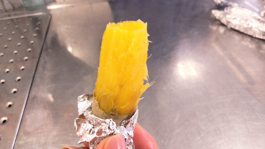 とってもいい匂いがしてきて、小さいサイズのおいもを試食♡写真は安納いも。なんと美味しそうな濃い黄色、湯気も上がって、最高の甘さでした♡
