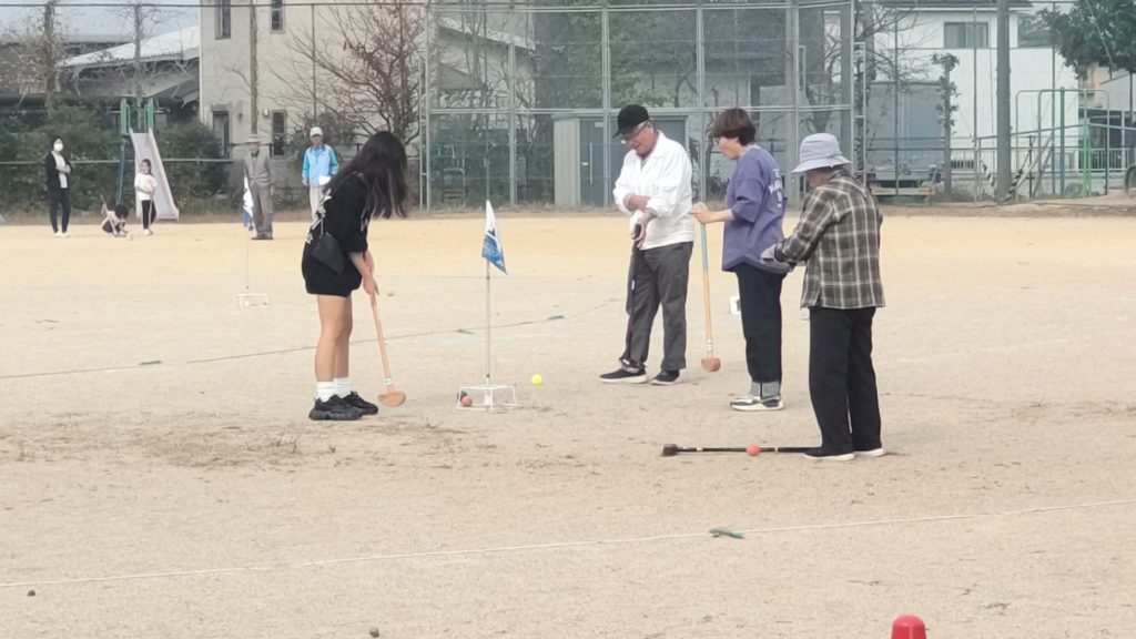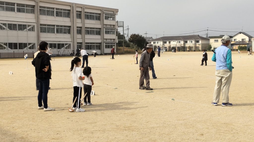 小津小学校のグランドでは、三宅町のグラウンドゴルフ大会が開催されていて、寄せていただきました。