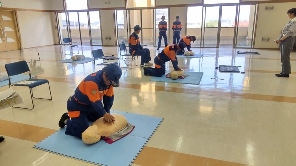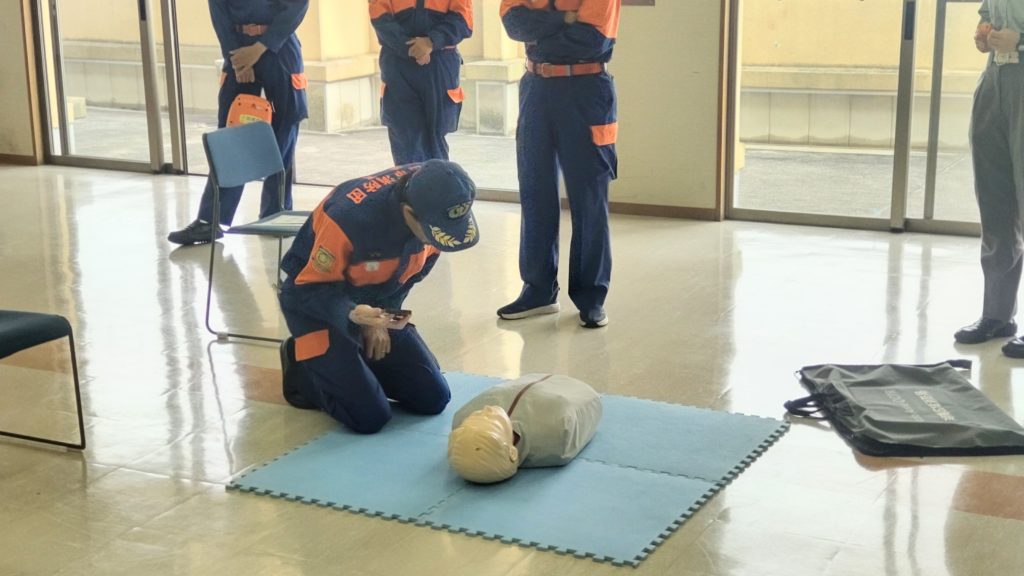 市長査閲が終わるとすぐに北消防署に向かい、活動服に着替えて、救命講習指導(実技指導)にあたりました。