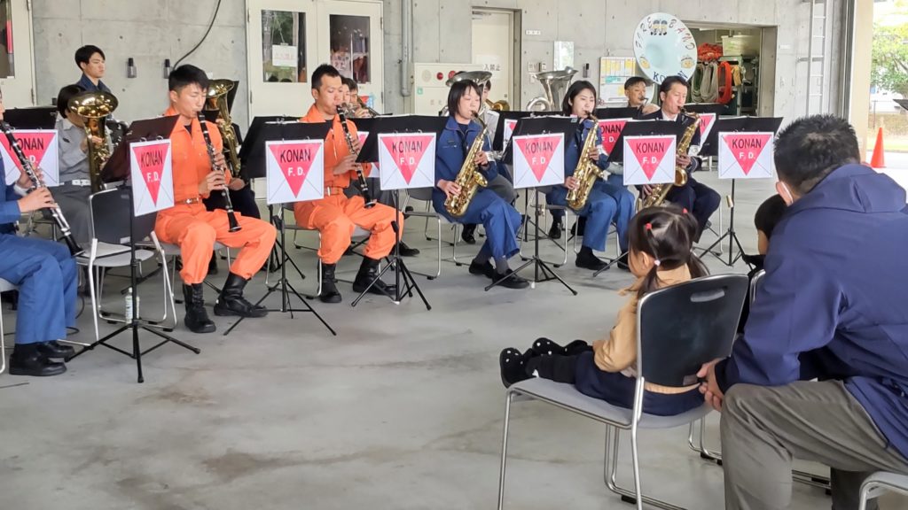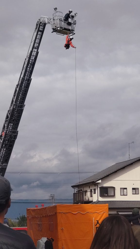 オープニングは署員さんのブラスバンド、はしご車からの訓練披露、とっても格好良かったです。