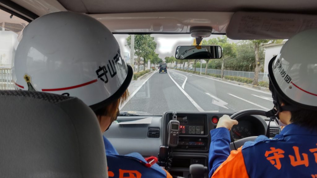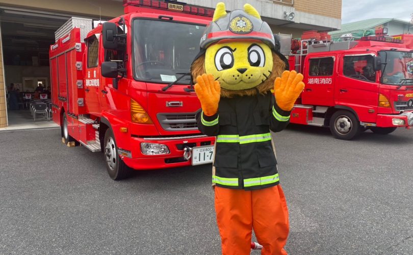 火災予防週間の初日(8日)の朝は、守山駅前で街頭広報に出動。