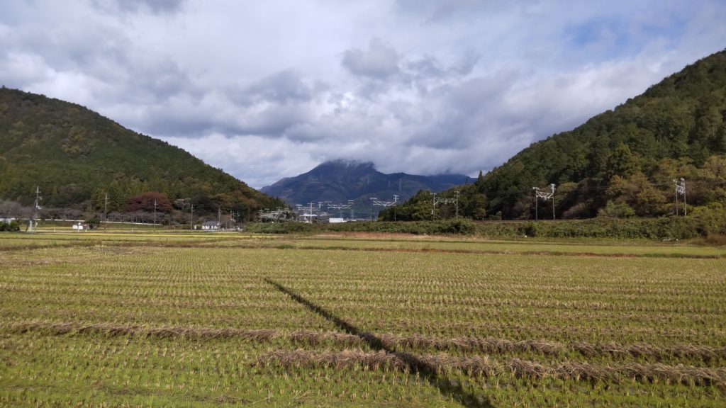 雲のかかる伊吹山を見ながら秋の田園風景を見ながらウォーキング。