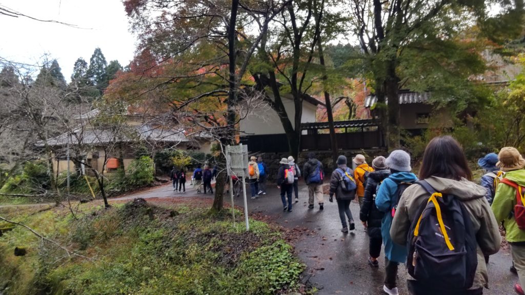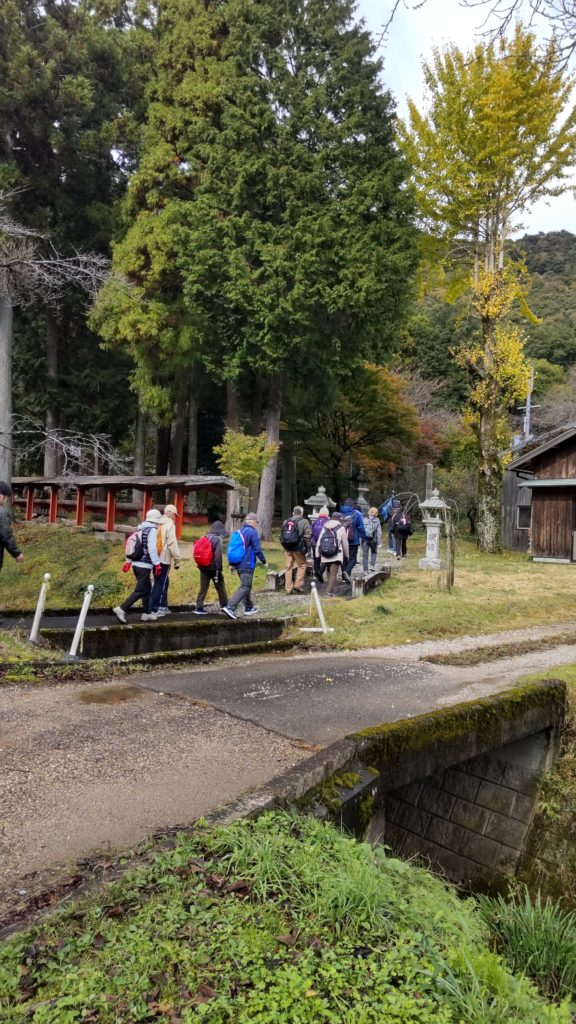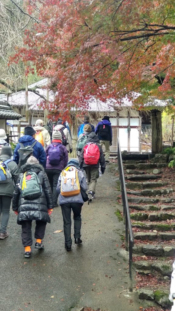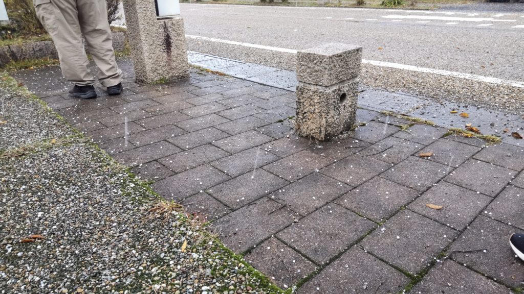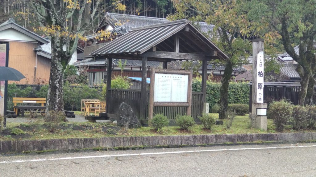 次は柏原宿の公園で昼食タイム。あられが降ってきて大急ぎで傘をさして食べました。とても寒くて、道沿いの屋根の下で雨宿り(あられ宿り)させていただいていると、「よかったらどうぞ」と中から声をかけてくださり、人の心の温かさに触れました。ありがとうございました♡