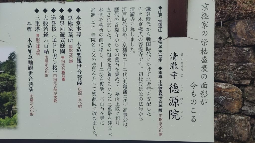 はじめに清瀧寺徳源院に行き、住職さんに京極家歴代のお話を聞かせていただきながら、立派なお庭を拝見させていただきました。幽霊の絵もありましたが、迫力ありすぎて写真を撮るのはやめました。