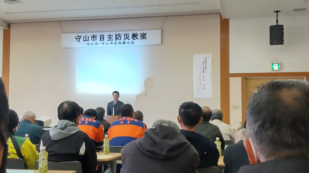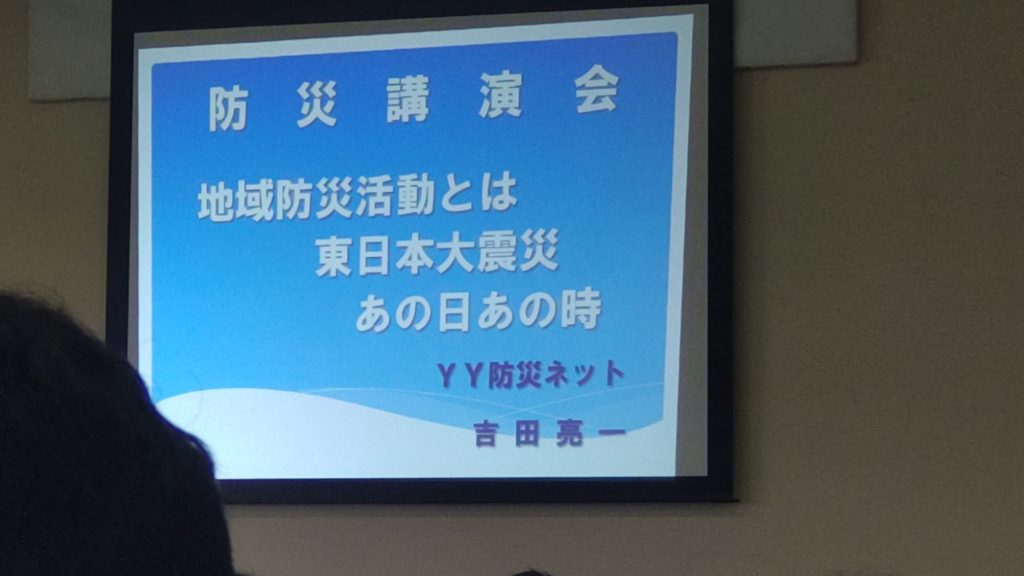 地域防災の取り組みのお話でした。日頃から地域防災の活動を地域全体で取り組んでおられる方々が、実際に東日本大震災のときに混乱なく皆で協力しあって乗り越えた事例の紹介でした。