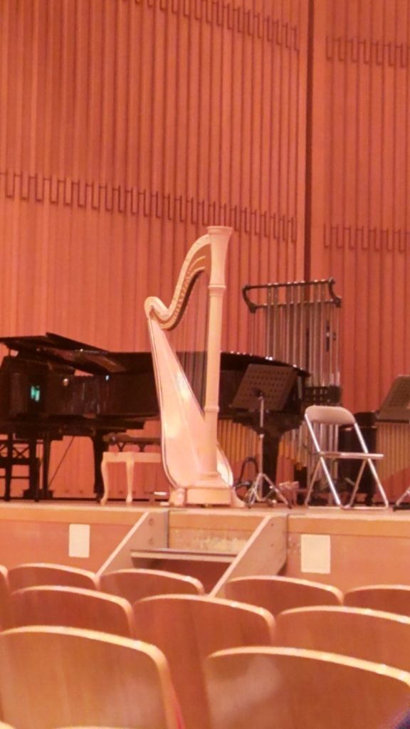 ステージには、大きなハープやチャイム、ピアノもあって始まる前からワクワク♫