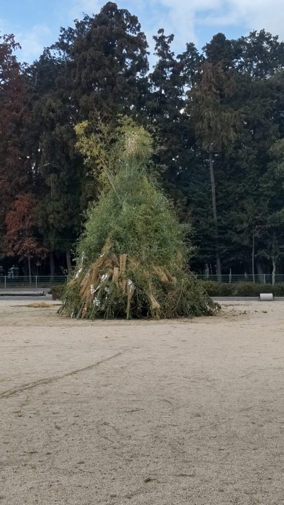 昼から役員さんが竹とわらでやぐらを組んでくださり、その中に回収したお札や正月飾りを収めます。