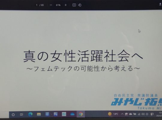 今日20日は、午前中は委員会の傍聴昼からは、オンライン研修に参加しました。研修のテーマは、「真の女性活躍社会へ …